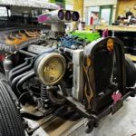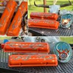 - Hand‑painted pinstripe panel in classic hot‑rod style